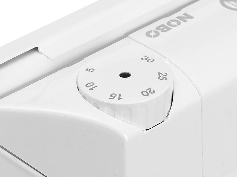Обзор конвектора NOBO Nordic NFK 4W 15 необходимо начать с инновационных технических характеристик устройства. Электронный термостат с ручным управлением сделает использование обогревателя простым и комфортным. Достаточно лишь отрегулировать регулятор-колесико до желаемого температурного уровня. Термостат является несъемным, что исключает его использование в системе удаленного управления Eco Hub. Функция автоматического сохранения данных позволяет фиксировать выставленные значения, поэтому конвектору не страшны даже перебои в электричестве.