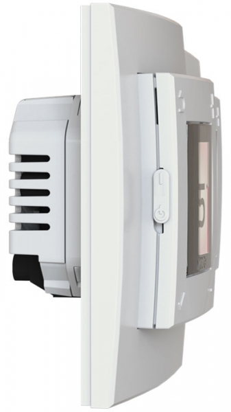 Небольшой блок питания глубиной 22–25 мм крепится внутри настенной коробки. Рамка и интерфейсный модуль закрепляются на стене без вспомогательных винтов. Все электронные компоненты закрыты и не создают опасности во время монтажа. Интерфейсный модуль может быть снят и заменен пользователем без необходимости отсоединения от сети электропитания.