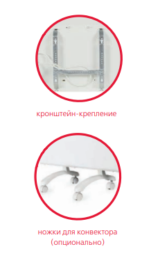 Размещение конвектора настенное. Монтаж производиться с помощью специального крепежного набора и кронштейна, которые поставляются в комплекте. Возможно также и напольное размещение устройства при опциональной покупке специальных ножек. Такое размещение конвектора будет полезно при необходимости обогрева нескольких помещений попеременно.